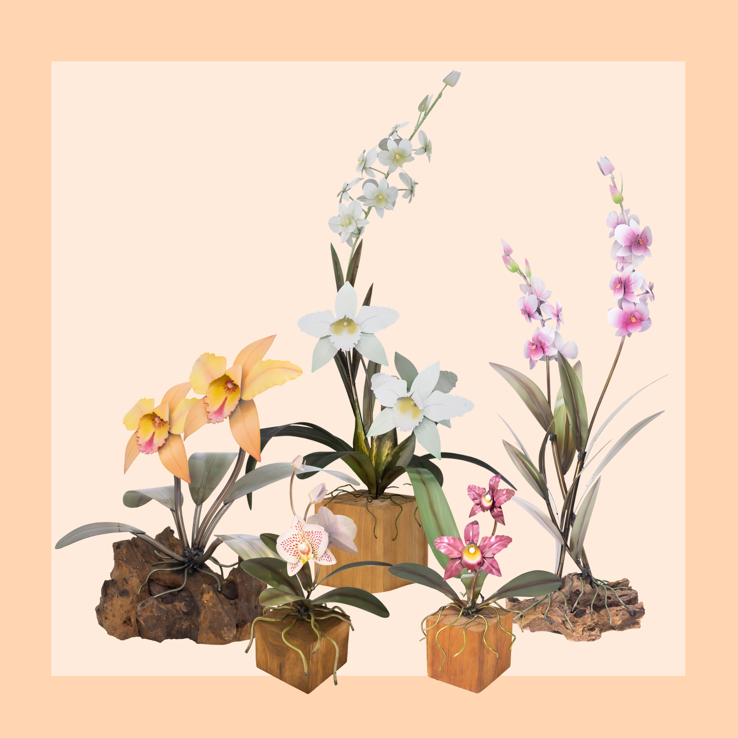 Add a touch of botanical beauty to your home or space with these gorgeous copper artworks. These sculptures have an earthy teakwood base and an organic array of masterfully crafted orchid flowers, perfect for any space, patio, office, and beyond!