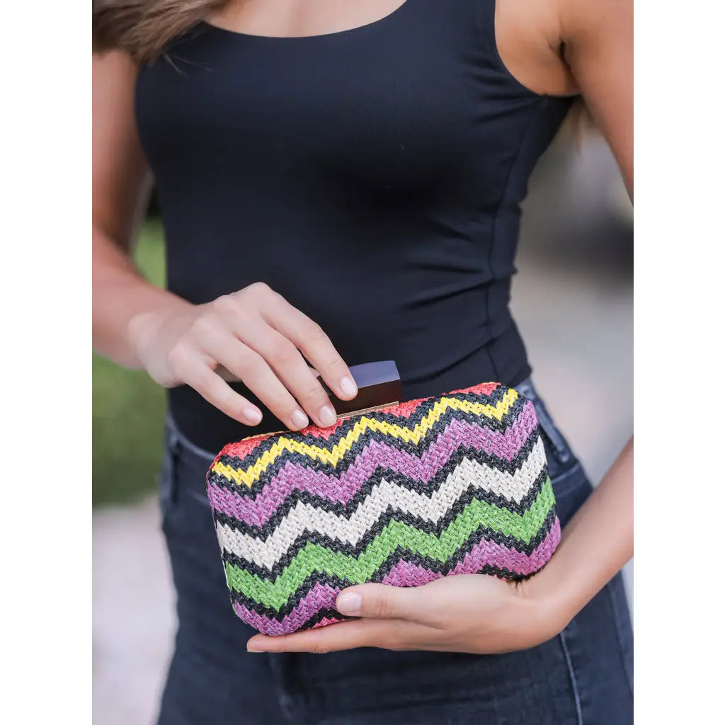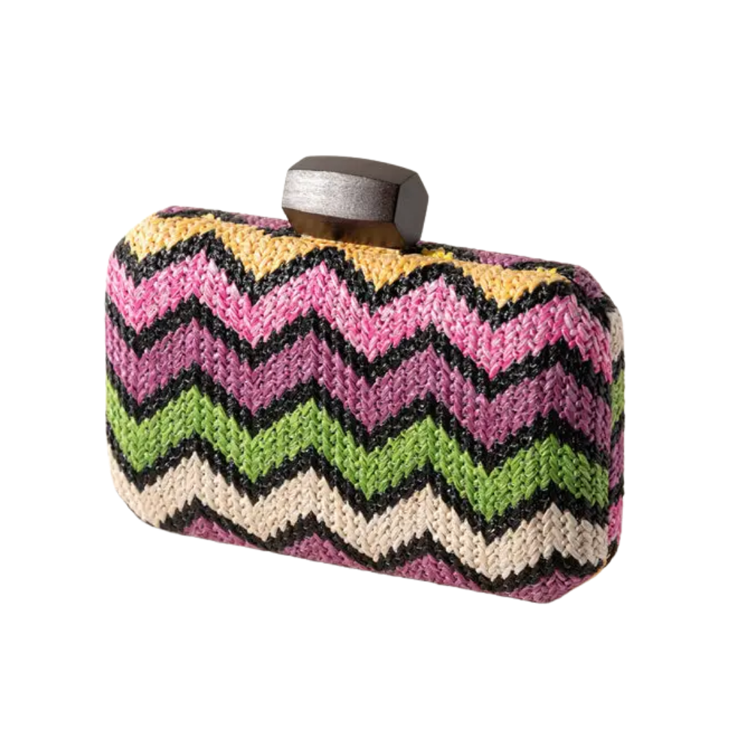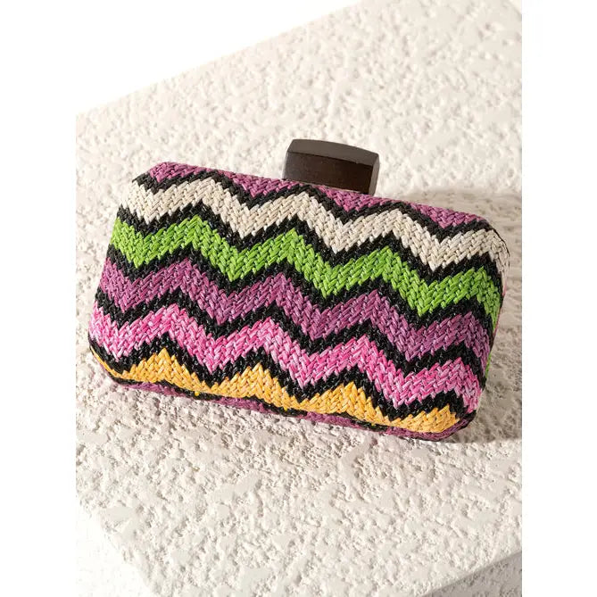 Meet your favorite summer clutch, the Amalia Minaudiere from Shiraleah. This clutch features an intricate pattern and a wooded closure detail elevating any outfit making it look chic and sophisticated. Measuring L 8" × W 2" × H 5"" and a 23" L cross body chain , the Amalia Minaudiere Clutch effortlessly exudes style and sophistication.