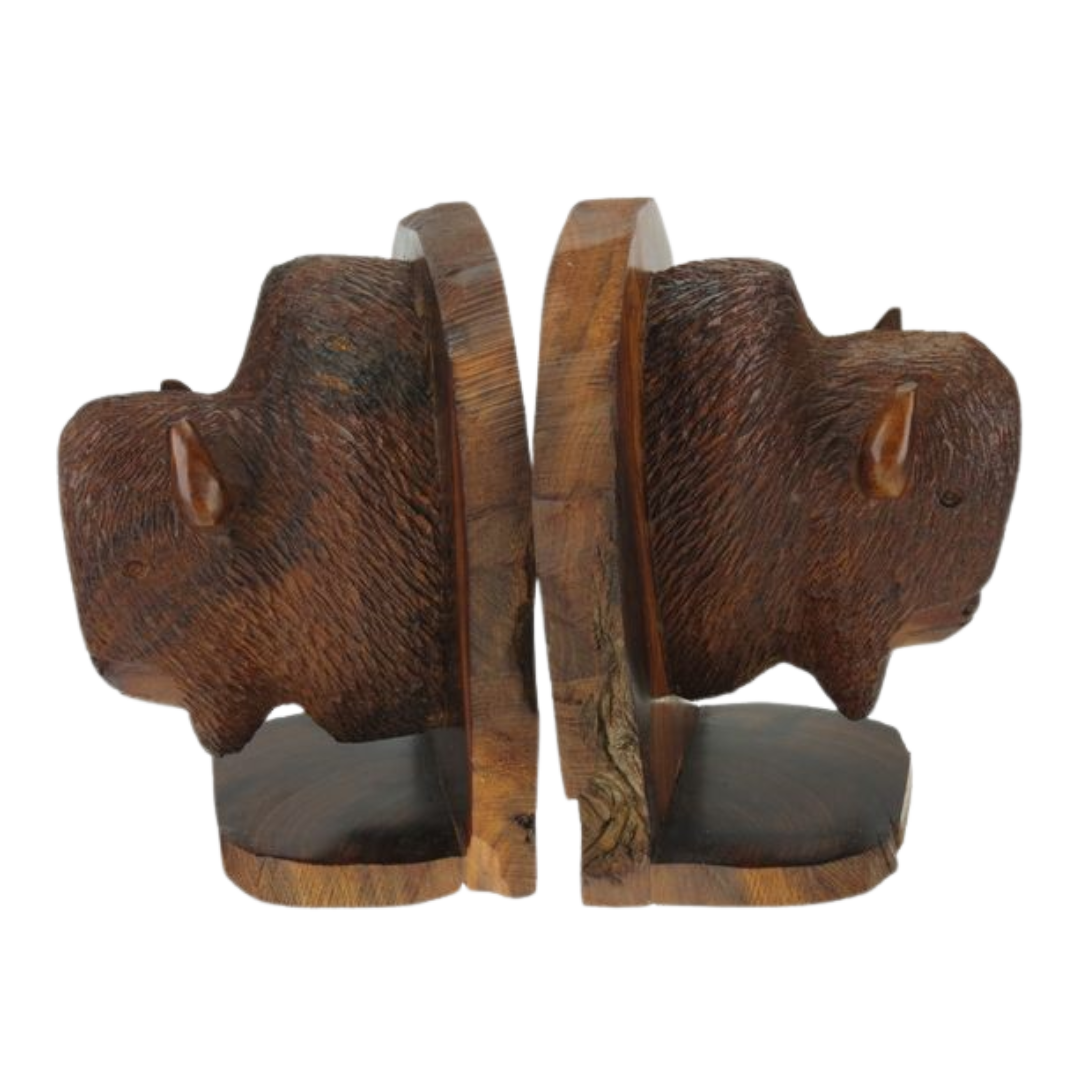 Buffalo Head Carved Wood Bookends (Set of 2)