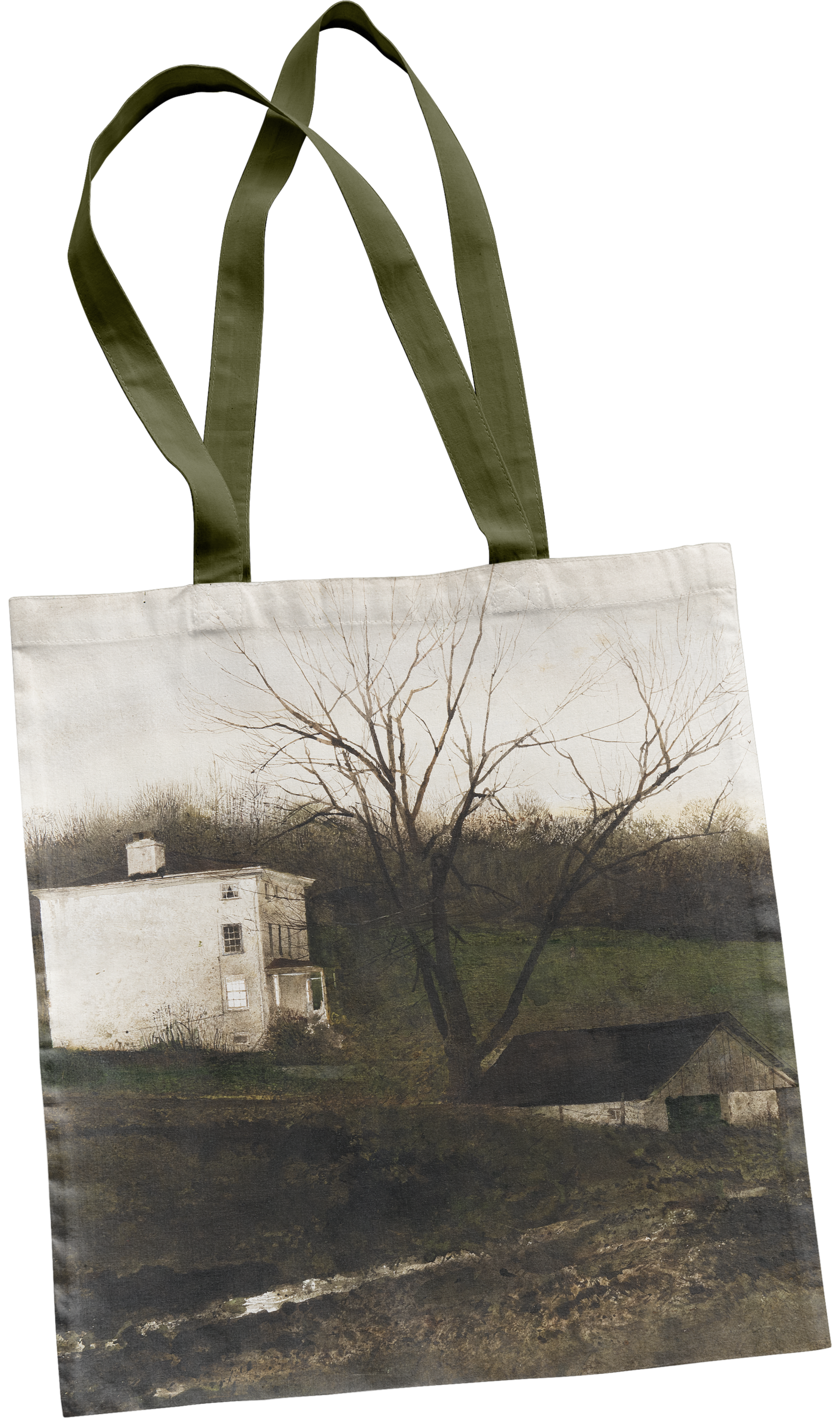 Carry a masterpiece wherever you go. This exclusive 100% cotton canvas tote features Andrew Wyeth’s Evening at Kuerners (1970), designed for the exhibition Andrew Wyeth at Kuerner Farm: The Eye of the Earth.