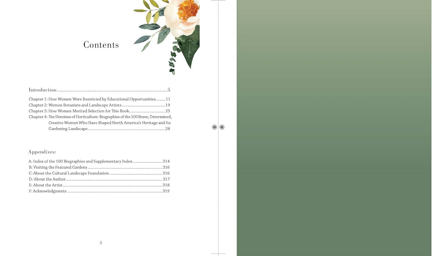 A celebration and a salute to 100 brave, determined, creative women over the past few centuries who have shaped North America’s heritage and landscapes through their horticulture work and contributions.