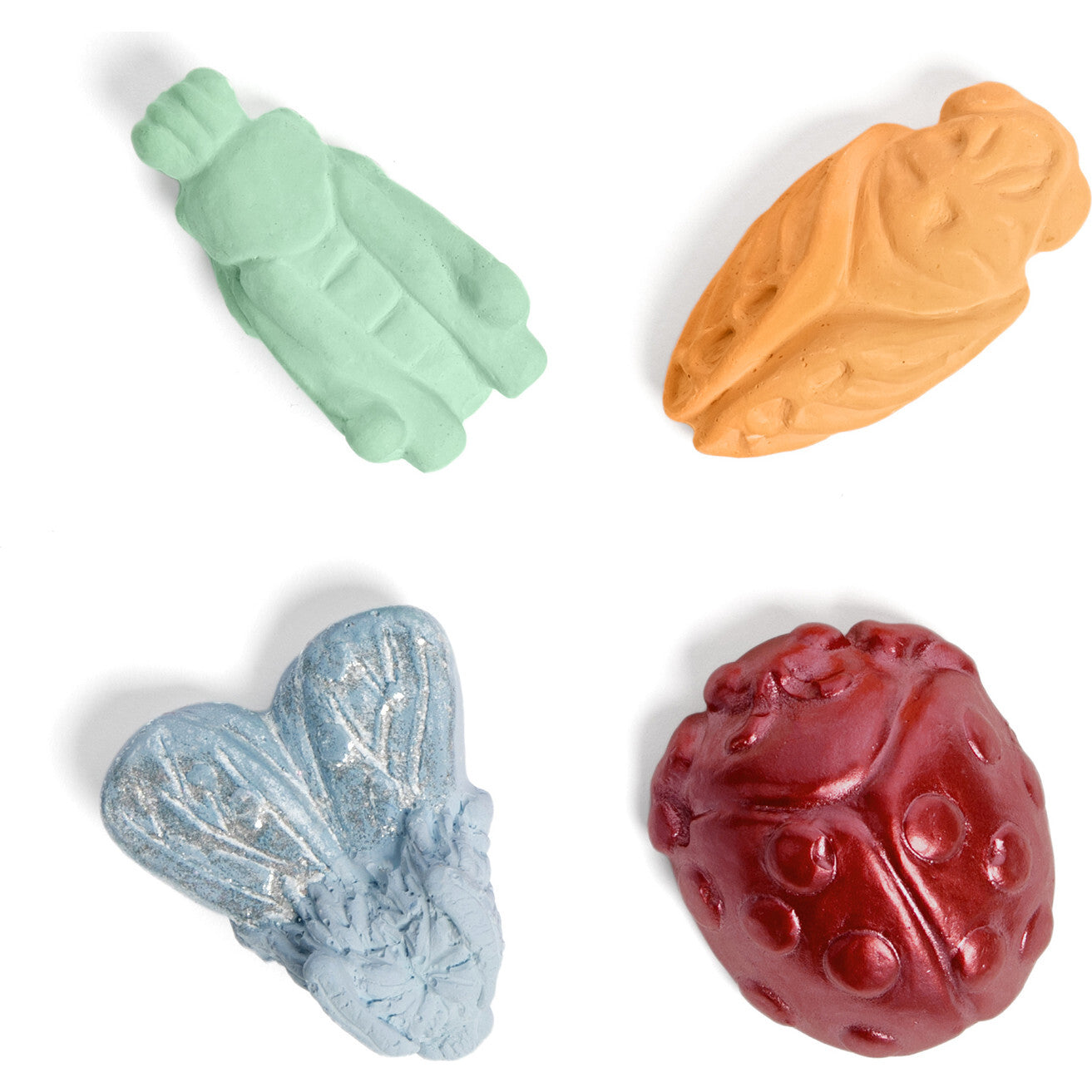 - Includes 1 Ladybug - purple with red paint, 1 Cicada - orange, 1 Moth - blue with silver glitter, 1 Grasshopper - green