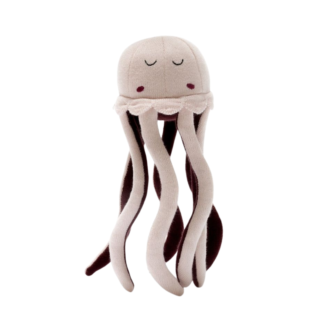 Our baby pink jellyfish plush is crafted from sustainably sourced organic cotton, designed with little ones in mind.