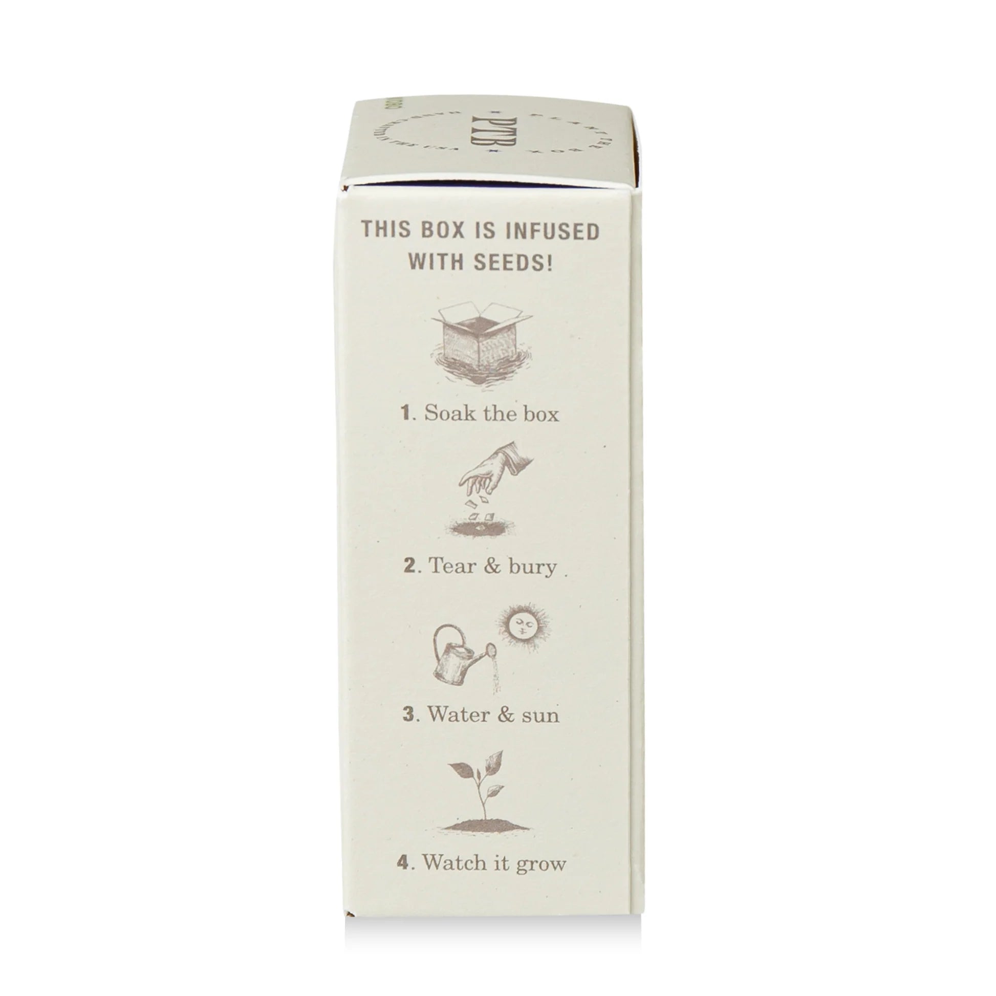 The scent of fresh linens, perfume of lavender distilled from nature’s own hand, and the richness of dense wood permeates this creamy soap bar. Plant the box and the seed-infused package will grow soothing lavender.